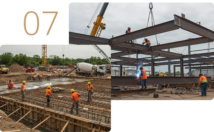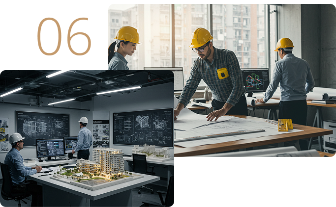 نقدم خدمات بناء متكاملة تغطي كل مرحلة، من التصميم المعماري والهندسي إلى التنفيذ والتطوير والتشطيب والتسليم. بجمعنا بين الابتكار والدقة والموثوقية، نضمن تنفيذ كل مشروع وفقًا لأعلى معايير الجودة العالمية، بما يلبي توقعات عملائنا ويعكس التزامنا بالتميز في كل تفصيل